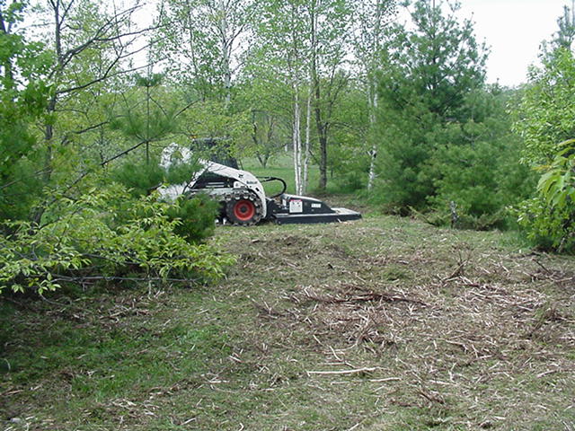 Reclaim your valuable property. Our Bobcat Brushcat makes quick work of unwanted juniper and other scrub brush. It will handle Sumac and saplings to 4" diameter as well, leaving nothing but mulch in its wake. Whether you want to clear a narrow trail or mow an entire field we can handle it. We have even cleared the invasive phragmites under Wisconsin Dept. of Natural Resources contract.